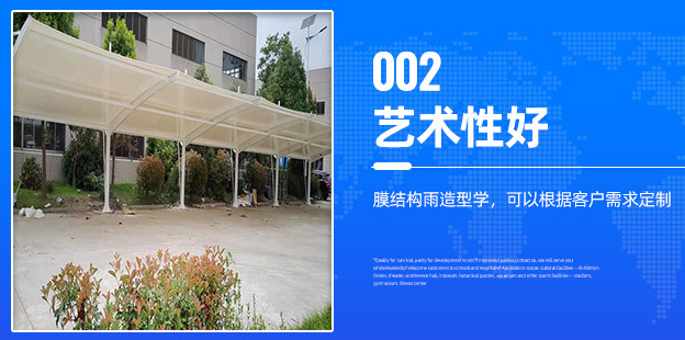 钢膜结构车棚在炎炎夏日可以有效抵挡强烈日光的照射,保护乐竞的爱车,它能够有效遮挡住阳光,让阳光在照射到遮阳棚时被膜结构反射出去,保证棚下的温度不会太高...