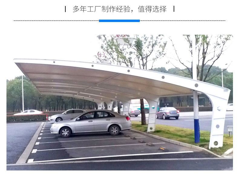 膜结构是一种新型的材料,乐竞(中国)-lejing.com厂家拥有多年工厂制作经验,膜结构车棚张拉膜厂的设计是由多种高强薄膜材料以及加强构件通过一定的方式使内部产生一定预张应力以形成某种空间的形状,值得选择!...