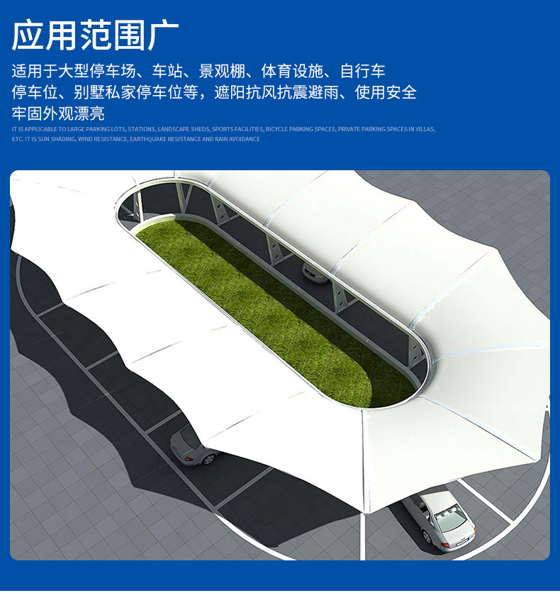 乐竞(中国)-lejing.com车棚材料选用了进口结构建筑材料:耐用、艺术性、经济性、透光性、耐候性、抗冲击性、阻燃性、耐温性、轻便性,乐竞(中国)-lejing.com车棚作用:具有遮阳、挡雨、实用、美观的作用...