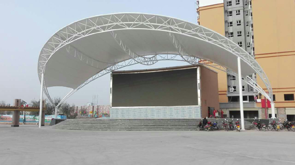 张拉膜结构罩棚的特点轻质:张力结构自重小的原因在于它依靠预应力形态而非材料来保持结构的稳定性。从而使其自重比传统建筑结构的小得多,但却具有良好的稳定性。建筑师可以利用其轻质大跨的特点设计和组织结构细部构件,将其轻盈和稳定的结构特性有机地统一起来。 透光性:透光性是现代膜结构最被广泛认可的特性之一。