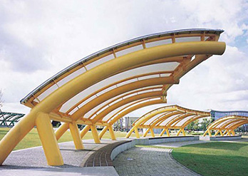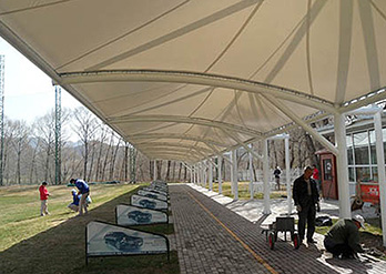 高尔夫膜结构在建材装潢领域成为人们的产品,尤其是在全国更是引起了一阵销售热潮,膜结构的产品已被广泛熟知,以其独有的优美曲面造型,简洁、明快、刚与柔、力与美的完美组合,呈现给人以耳目一新的感觉