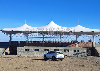 主席台膜结构修建独特的外型和夜景作用有显著的商业效应,施工周期短,加工和制造可在工厂内完结,在现场只进行拼接作业,建造快,工期短