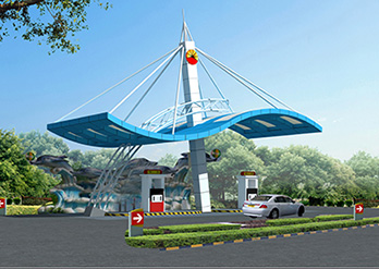 自助加油站膜结构,一般是指安装在加油站的膜结构顶棚,膜结构顶棚因其自重轻,具有良好的受力特点,所以成为大跨度空间结构的主要形式之一