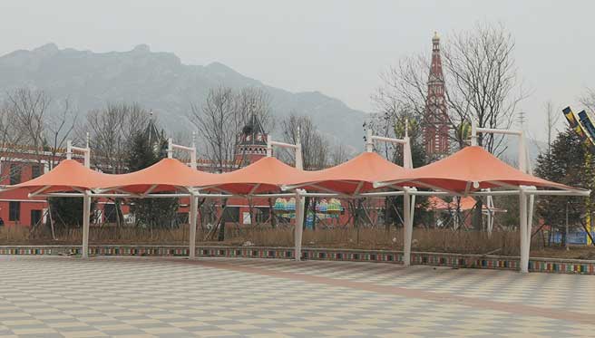膜结构车棚的安装包括膜体展开、连接固定和张拉成形三个部分,所以在安装时,应在膜面上安设爬用安全网,作业人员必须系安全带...